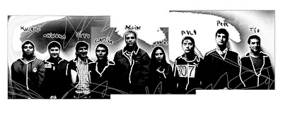 Retrato de un sujeto obtenido mediante la técnica de pintar la escena a través de flashes de colores, dibujo con linterna y exposición múltiple. Pelicula 35mm color.